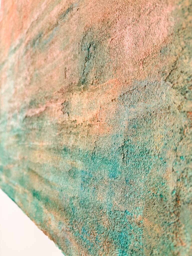 La superficie deja de ser un simple soporte para así convertirse en experiencia visual, en registro del tiempo, en diálogo silencioso entre estructura, entorno y transformación.