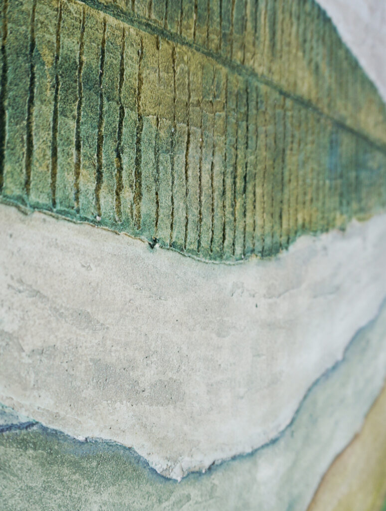 Lime mortar and acrylic on canvas. 90×60 cm.